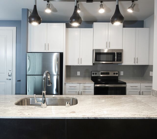 Enjoy meticulously designed modern interiors with open-concept floor plans, sleek gourmet kitchens with granite countertops and stainless steel appliances, and elegant design details from top to bottom. When it’s time to relax, you’ll find endless opportunities to unwind at home with a resort-style pool with cabanas, a beer garden to hang out with friends, a stunning rooftop lounge, and a state-of-the-art fitness center with instructor-led classes.